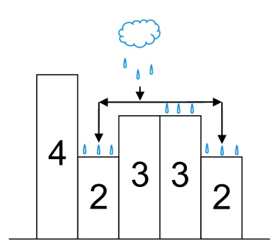 Little Petya often travels to his grandmother in the countryside. The grandmother has a large garden, which can be represented as a rectangle $1 × n$ in size, when viewed from above. This rectangle is divided into $n$ equal square sections. The garden is very unusual as each of the square sections possesses its own fixed height and due to the newest irrigation system we can create artificial rain above each section.